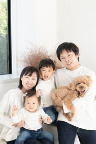 大事な家族のわんちゃんや猫ちゃんと一緒に家族写真。